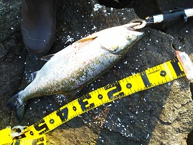 ただし川から流れ出た落ち葉がそこそこ浮いていて、潮目や波打ち際にたまりルアーによく引っかかる。