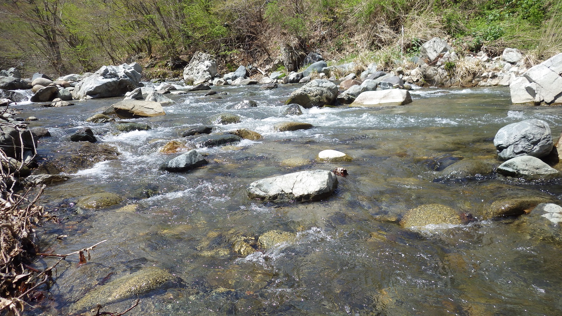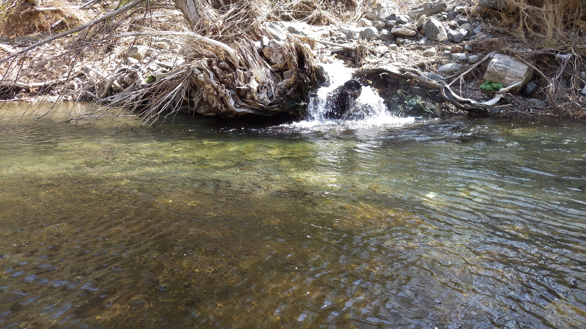 まずは下流側を攻めてみたが水量はややお多めだが濁りは無し。