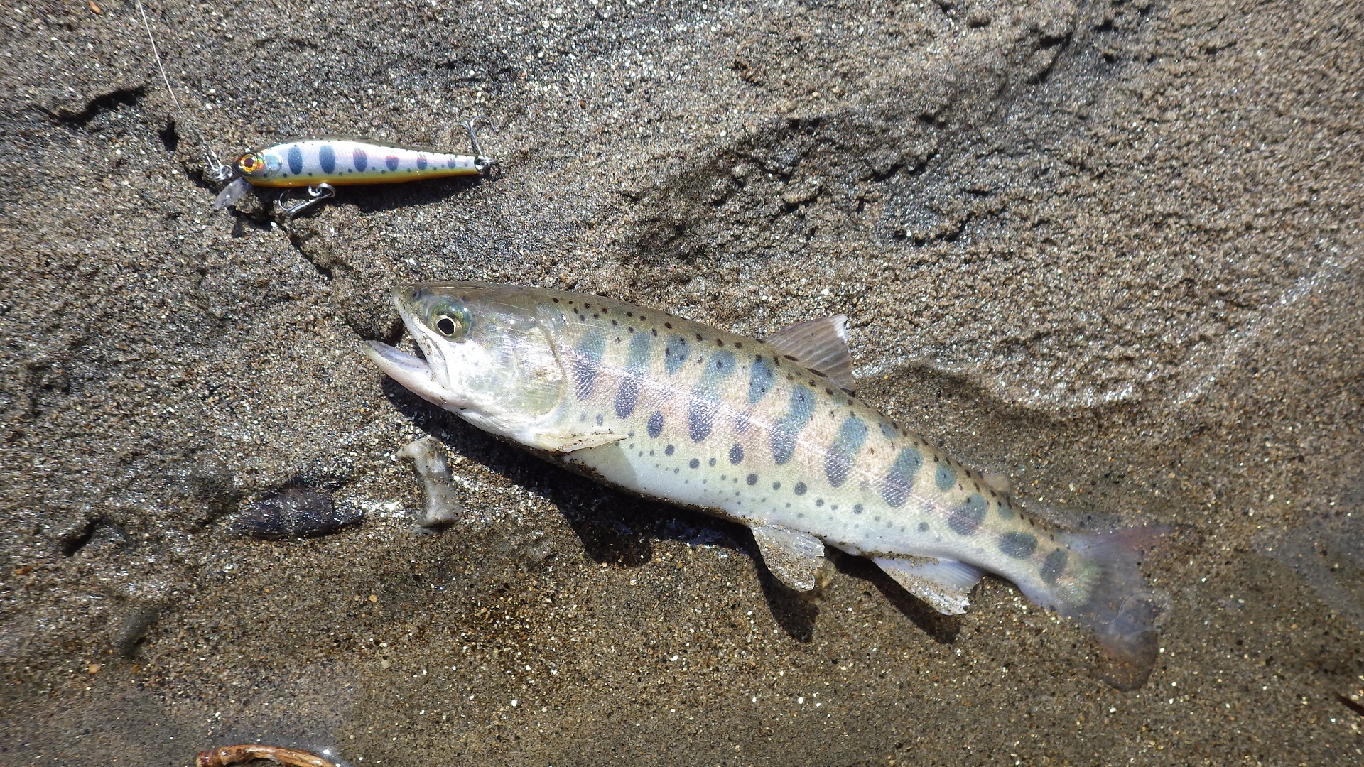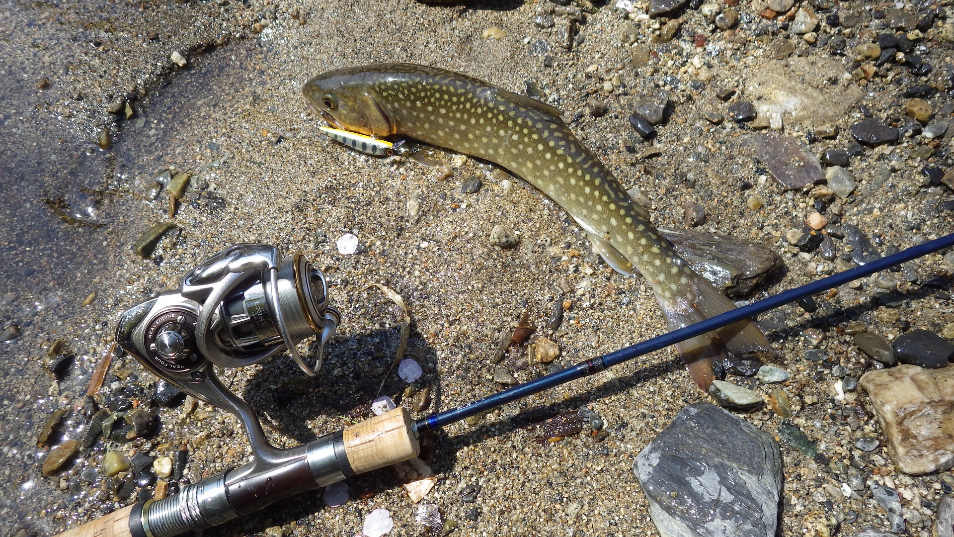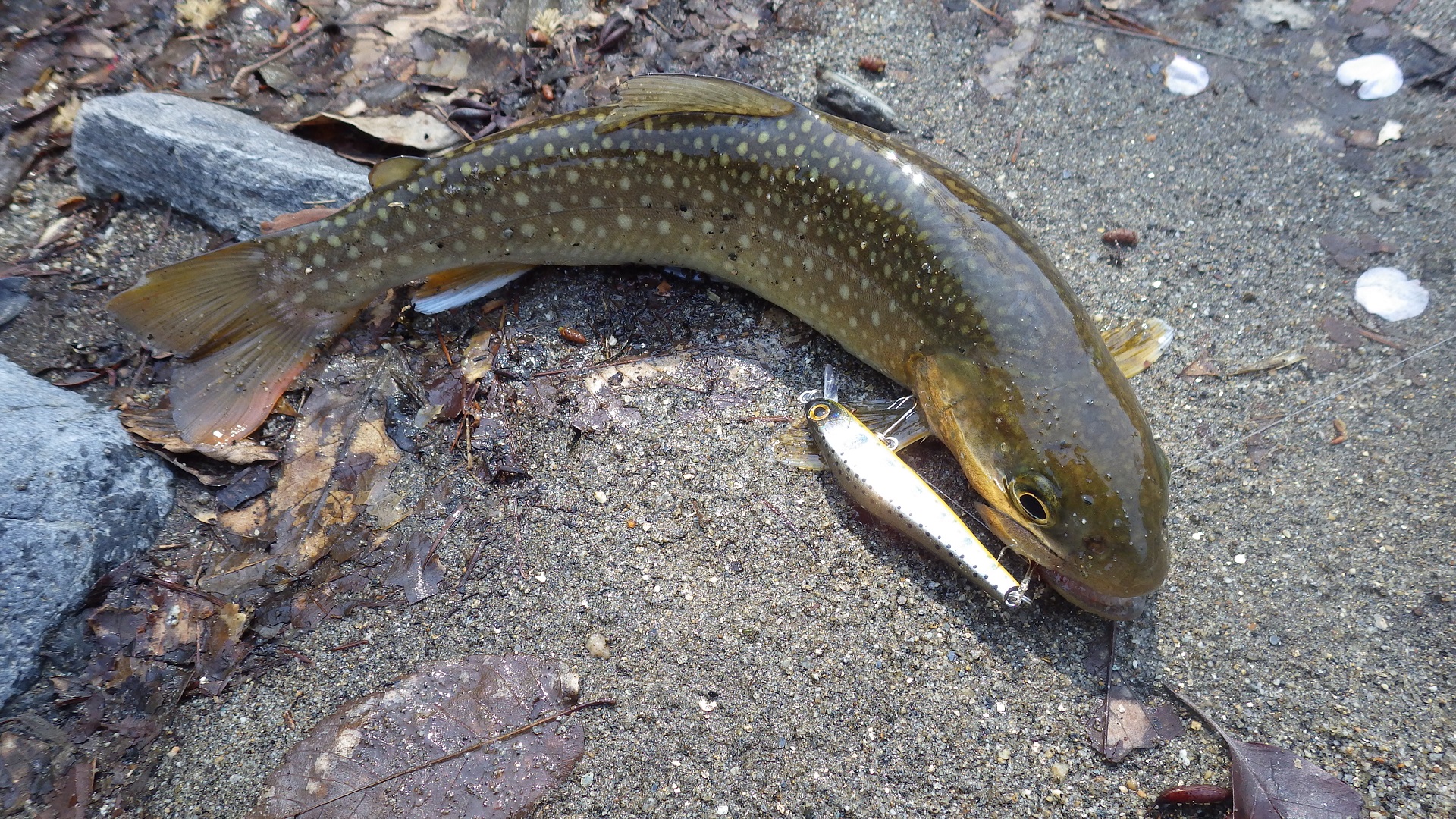 出てきたのは27㎝の岩魚でした。