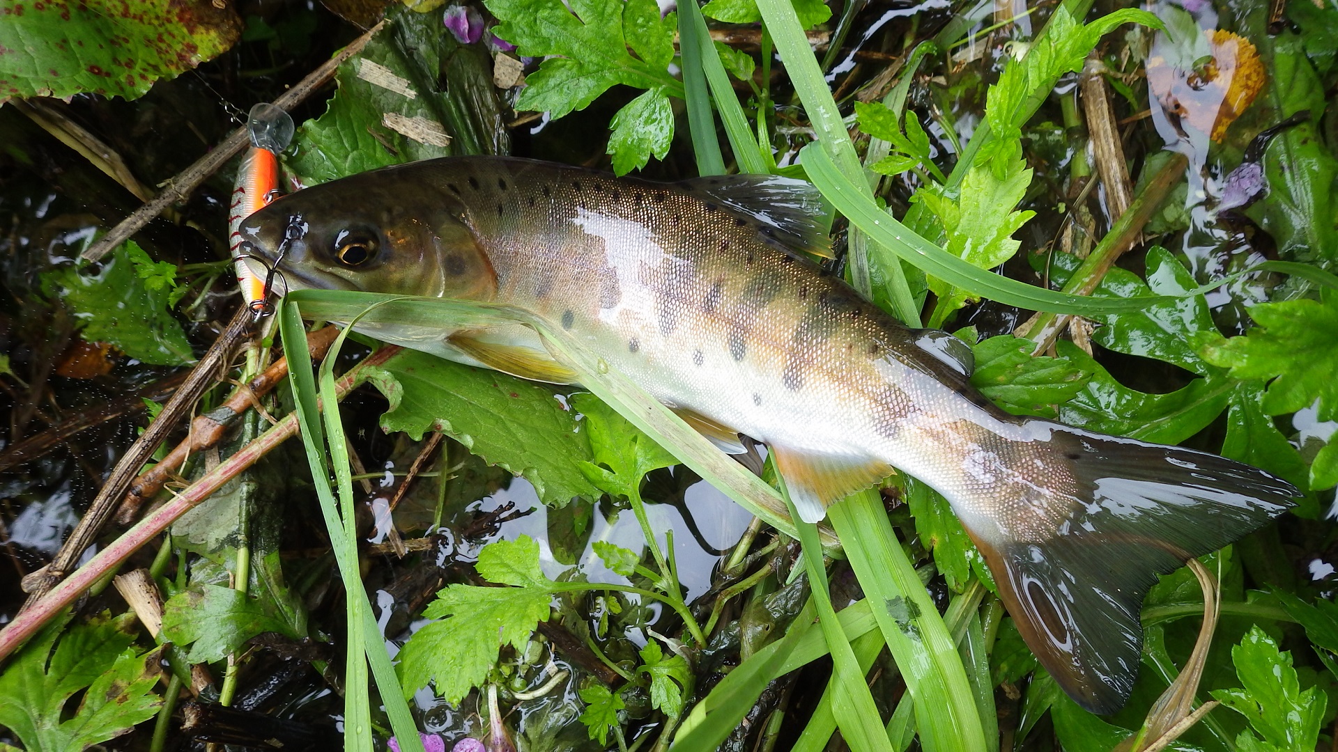 対岸の草や木の陰になっているような所にダウンクロスでキャストしてそのまま巻かずにドリフトさせてロッドを左右に振ったりしてみてるとズンッ!と一気に重くなり魚の重量+流れの圧力で通常の3倍位のスリリングなファイトができます。