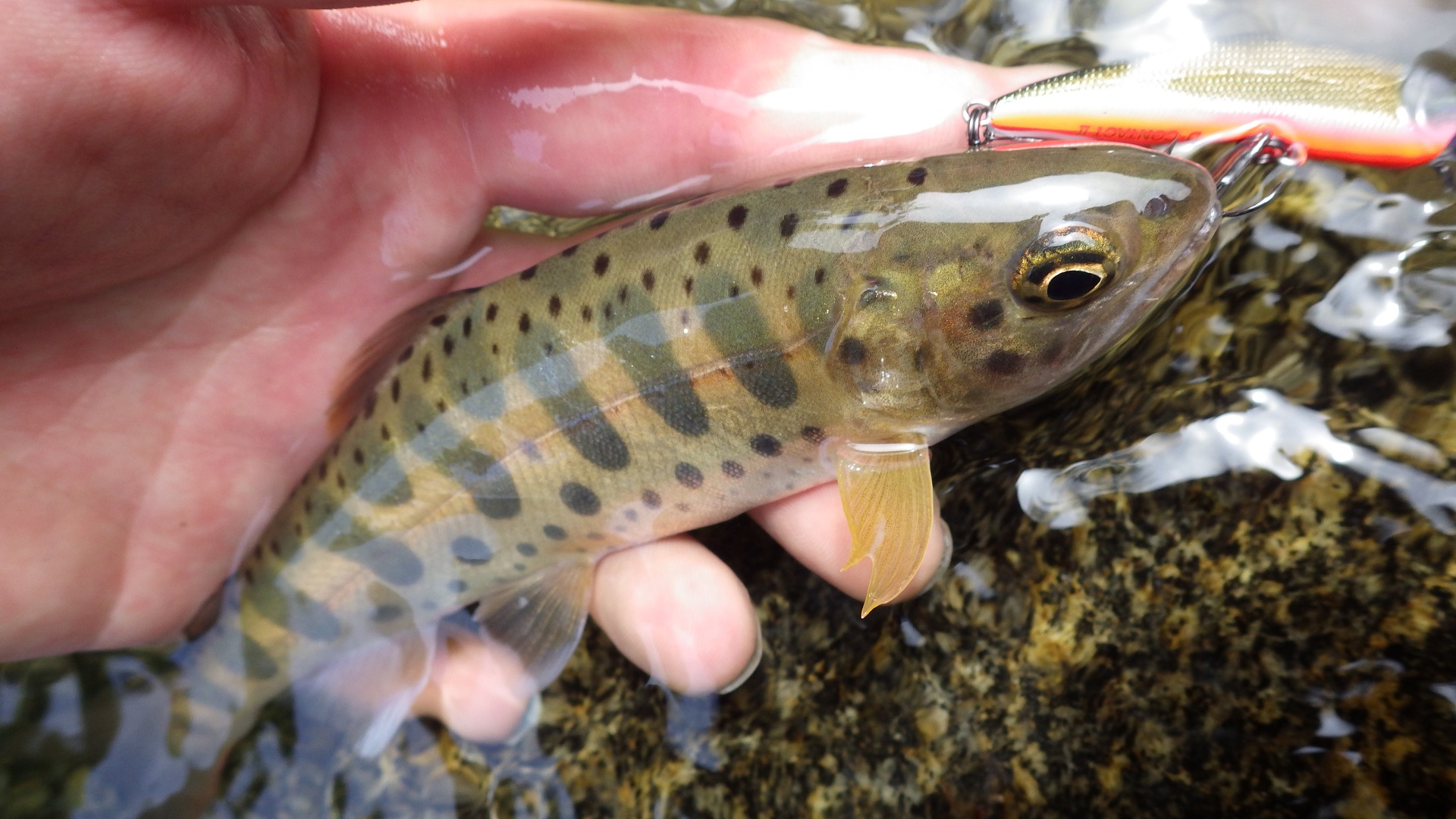 調子が良いところだと続けざまにきれいな山女魚、時折イワナが飽きない程度に釣れて楽しめる。