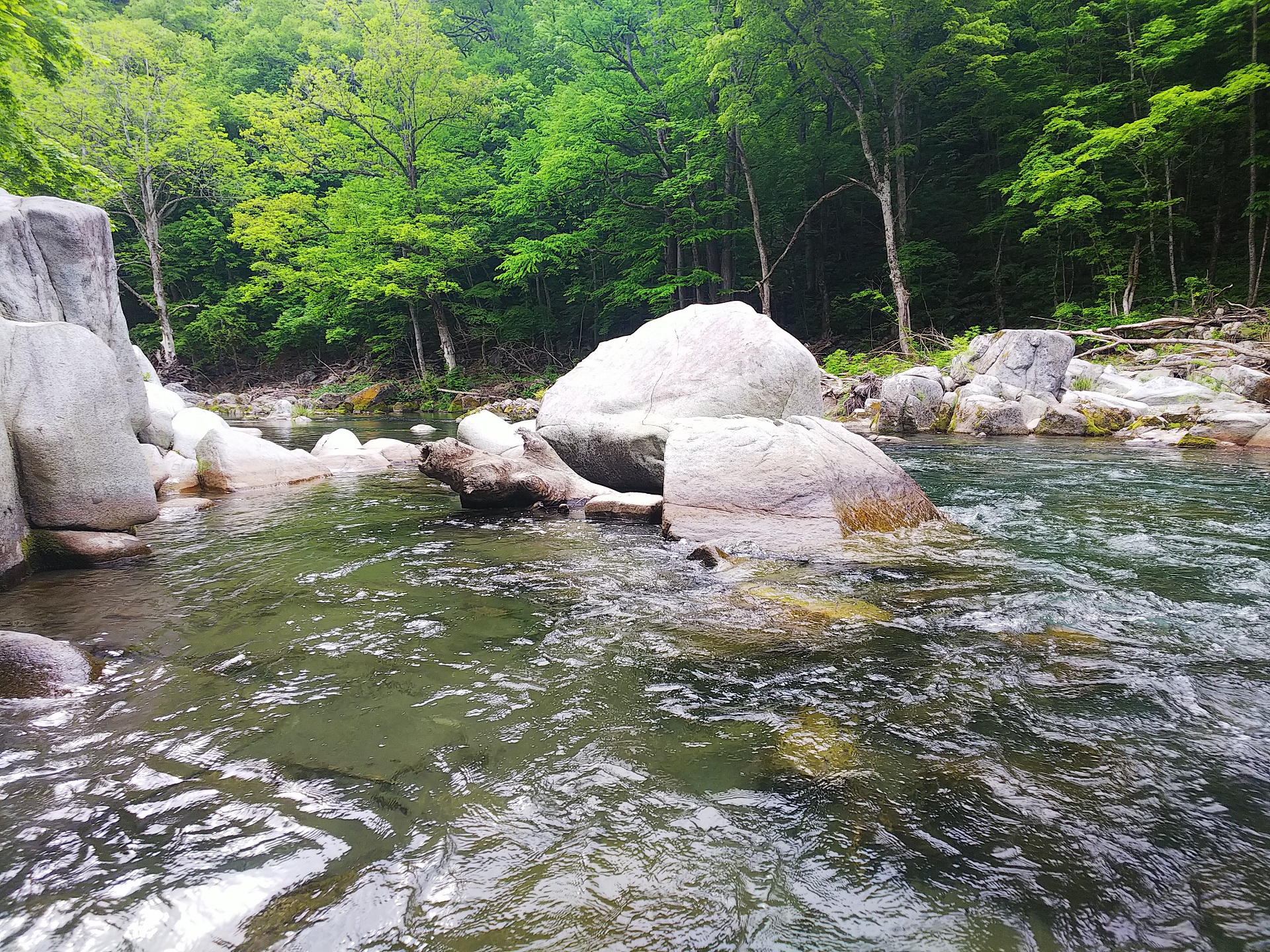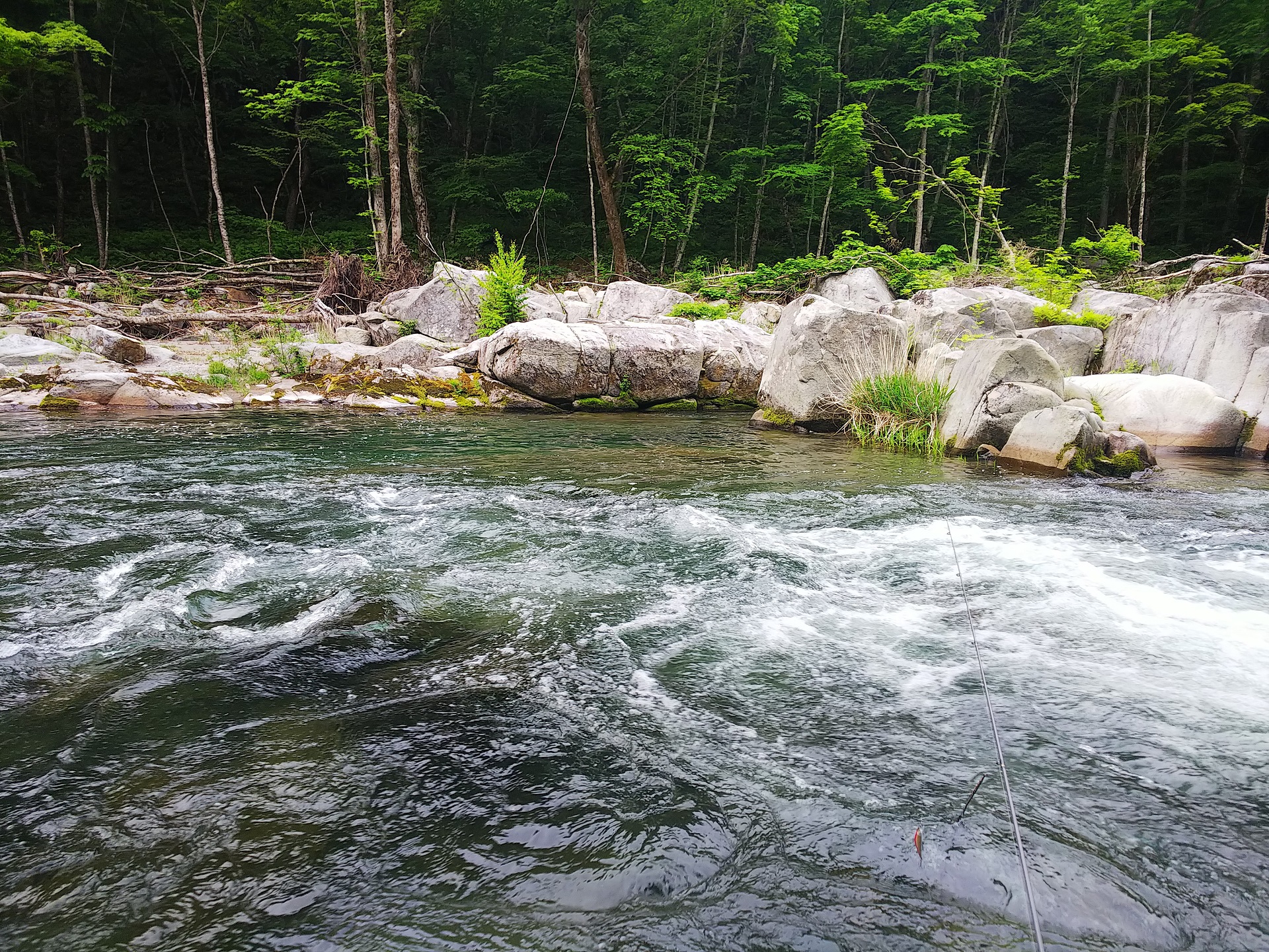 最近は小規模河川ばかり攻めていたので、深みのある淵や大石がゴロゴロ点在している緩急のある流れ、とても攻め甲斐のあるポイントの連続が面白くて釣れなくてもつい熱中してしまう。