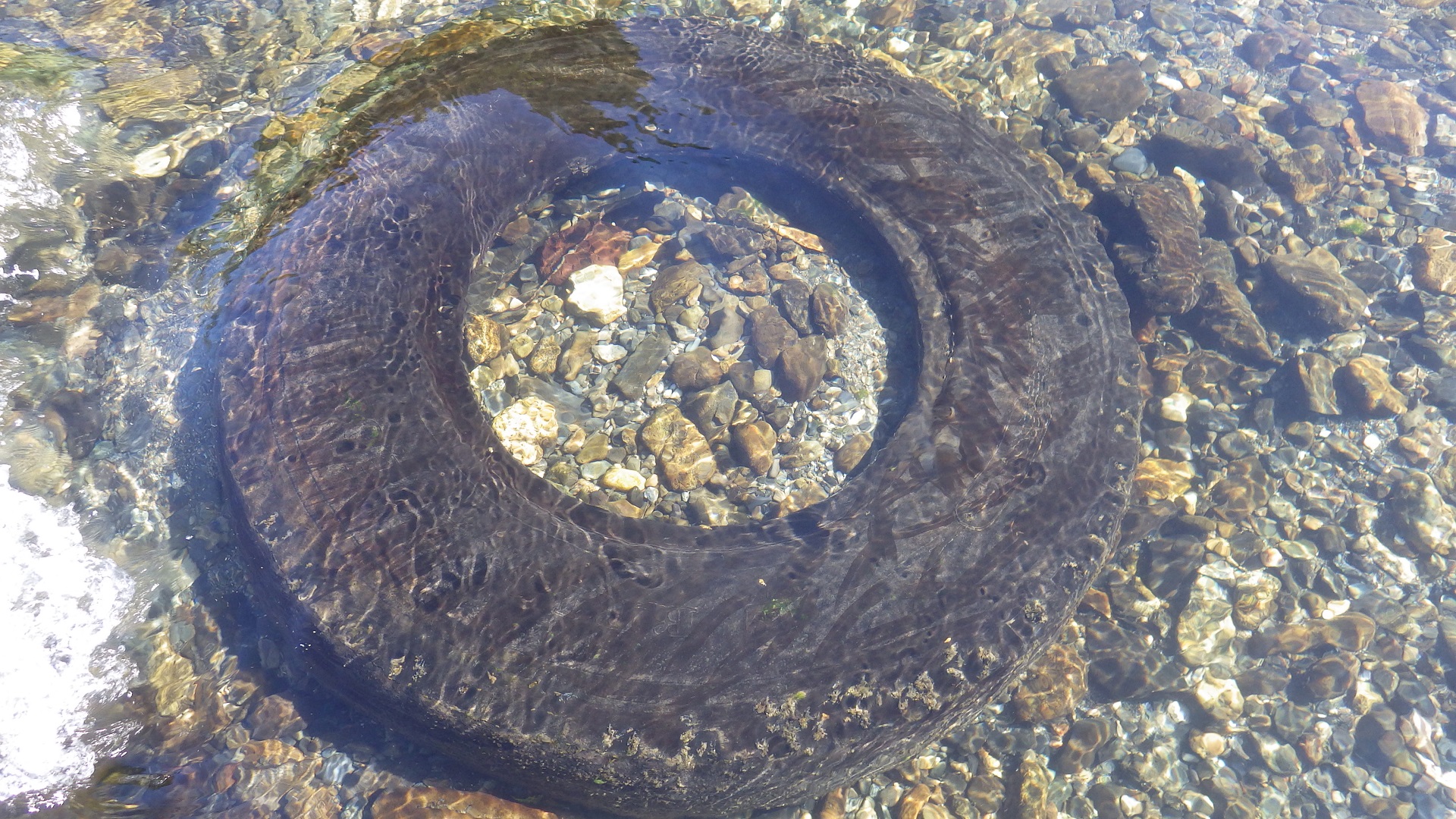 下流域にあった沈んだタイヤ、大きなハミ痕がたくさんついてました。