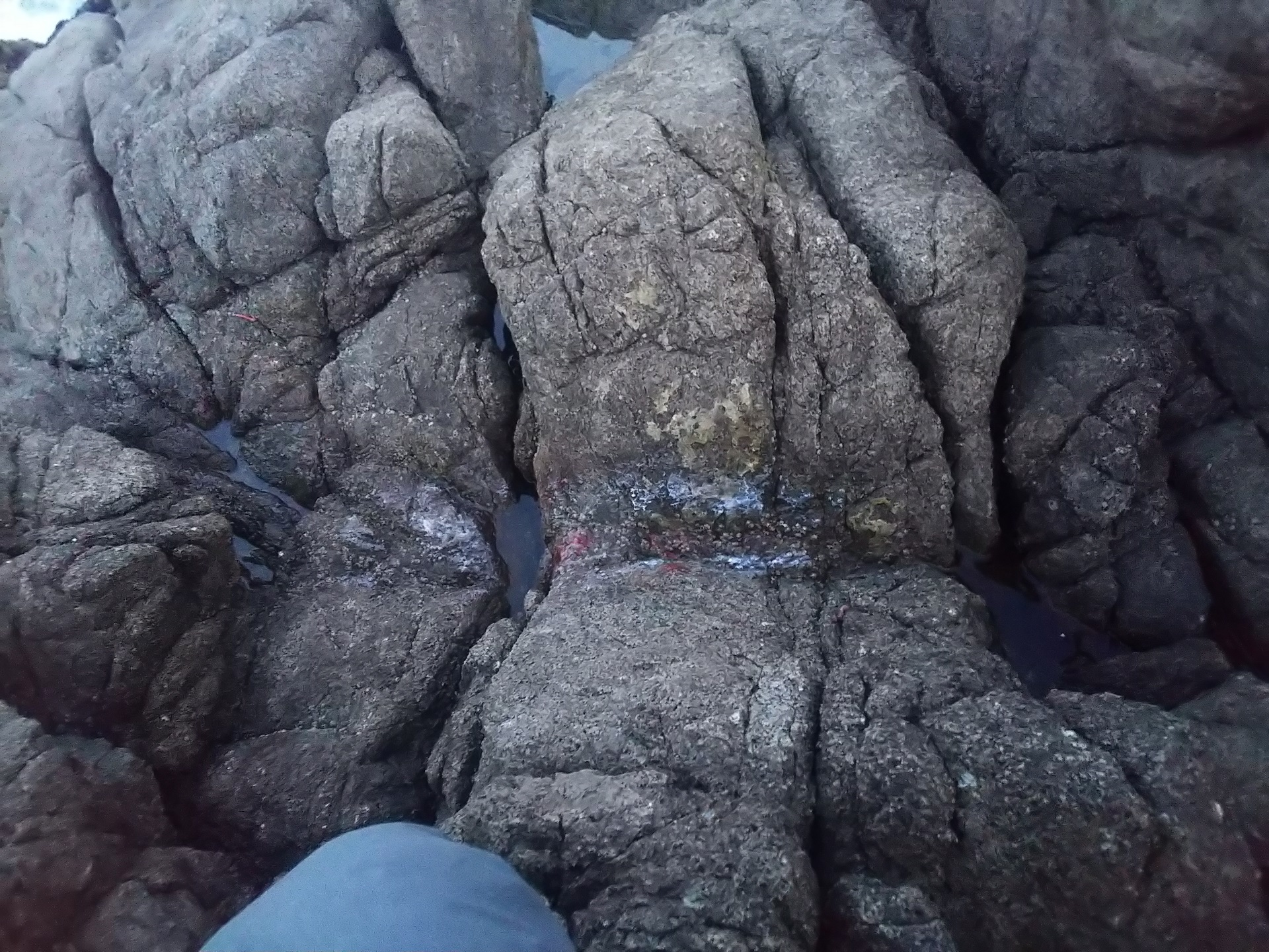 ナメタスタンプとは、ナメタを釣り上げて岩の上に置いた際にナメタのヌルヌルがねっとりと岩にこびり付いて白く跡が付く、これをナメタスタンプと言ってナメタが釣れるポイントの証明になるらしいです。イカ釣りの墨跡みたいなもん。