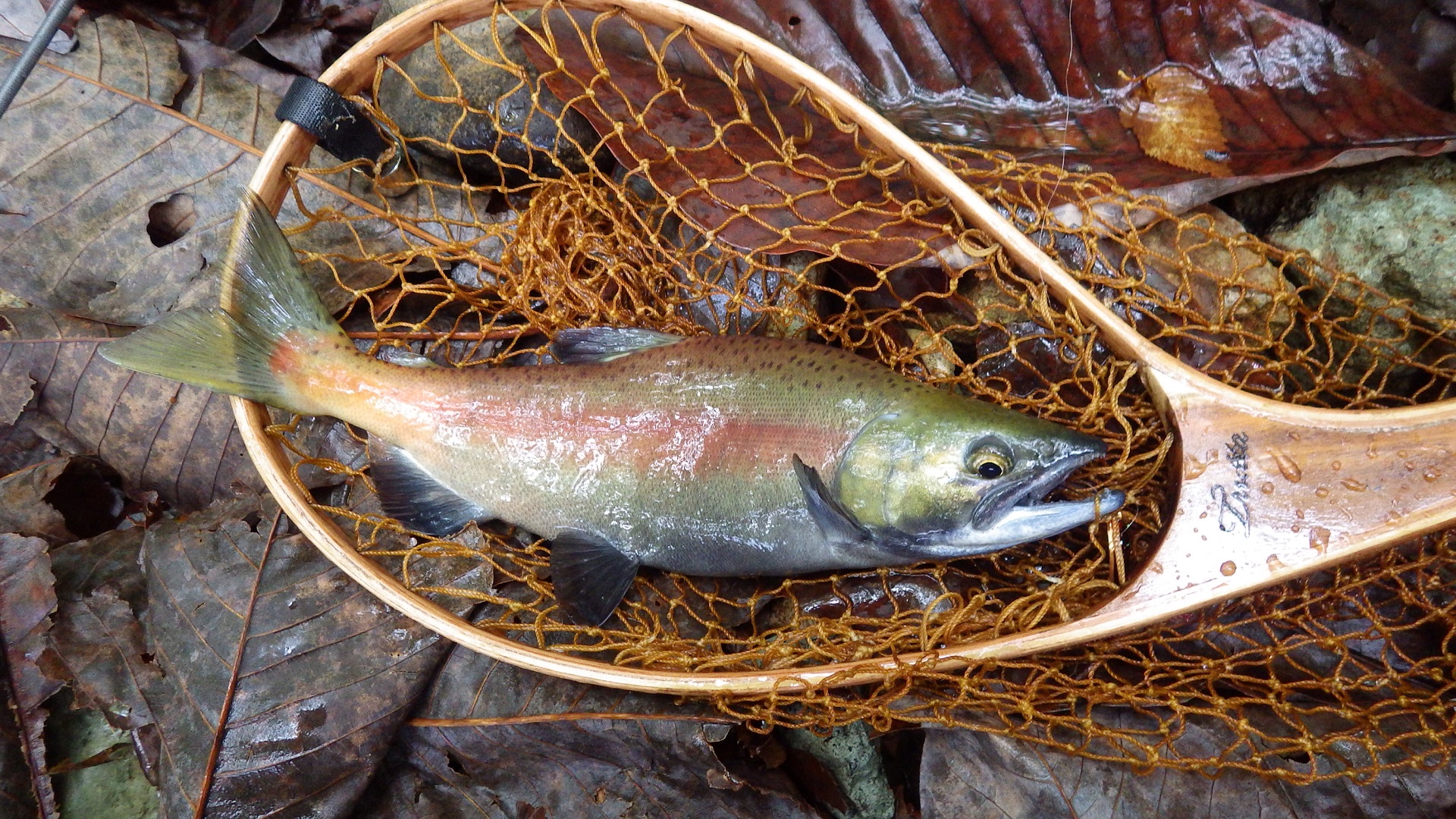 使用ラインがナイロンの3lbでしたが、湖面の止水域でのやり取りなので結構余裕でキャッチできた。
