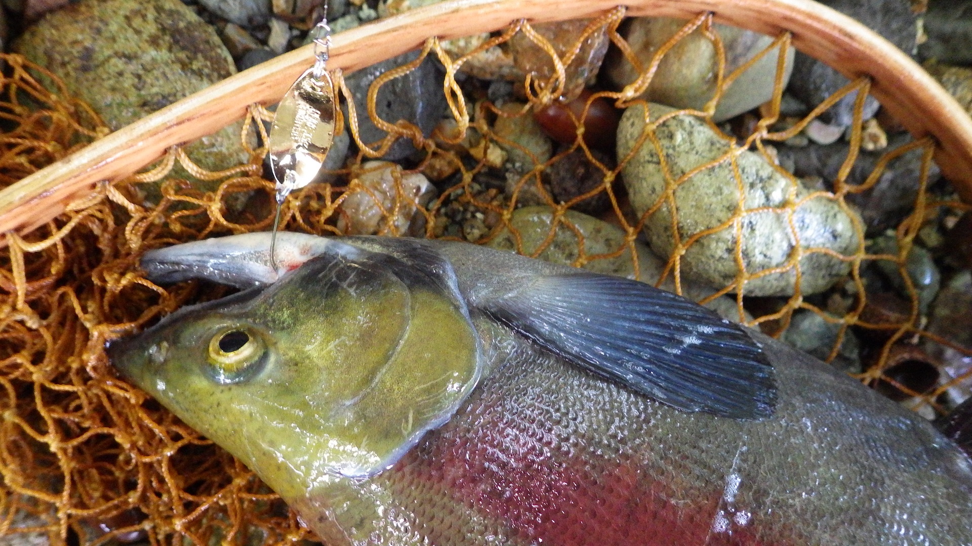 活性が高かった時間帯ではウェーディングしながらスプーンをテクトロしてるだけで釣れる状況もありました。